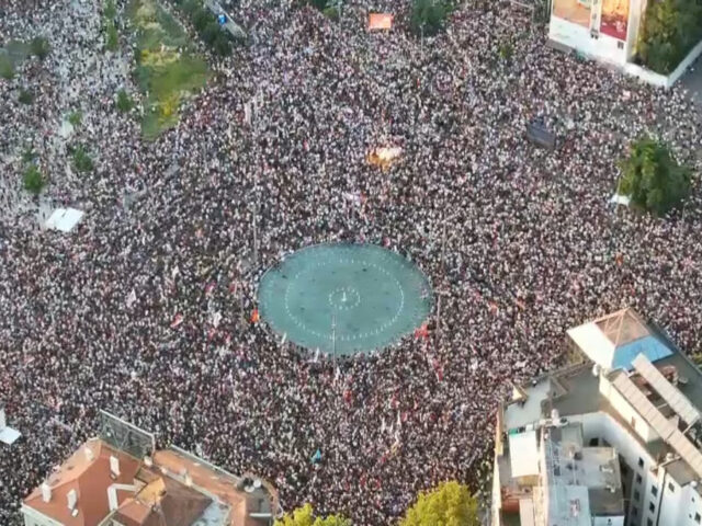 U viralnoj objavi na društvenoj mreži X, koja je prikupila 1,3 milijuna pregleda, dijeli se video koji prikazuje veliku masu ljudi na prosvjedu tijekom noći, osvijetljenu svjetlima mobitela (dostupno ovdje, arhivirano ovdje). Sniman je s visine, a vidljive su i srpske zastave. Videu je dodan tekst na engleskom: „Prosvjed u Beogradu“, potom „1 370 000 ljudi“ te „svijet mora ovo vidjeti“.